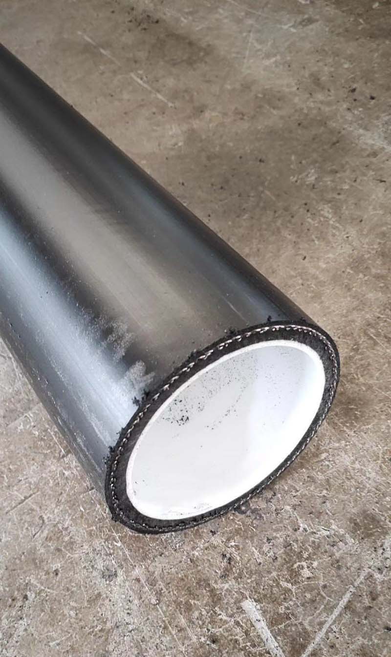 由于耐磨層的襯入,大大提高了管材在輸送漿體、固體介質時的抗磨性,提高管材的使用壽命。其耐磨性能遠優于目前大家公認的UHMW PE耐磨塑料管道,其耐砂漿磨損率低十多倍,可以廣泛用于輸送對管道磨損嚴重并有酸、堿、鹽腐蝕的固體、液固、氣粉、漿體等場所。